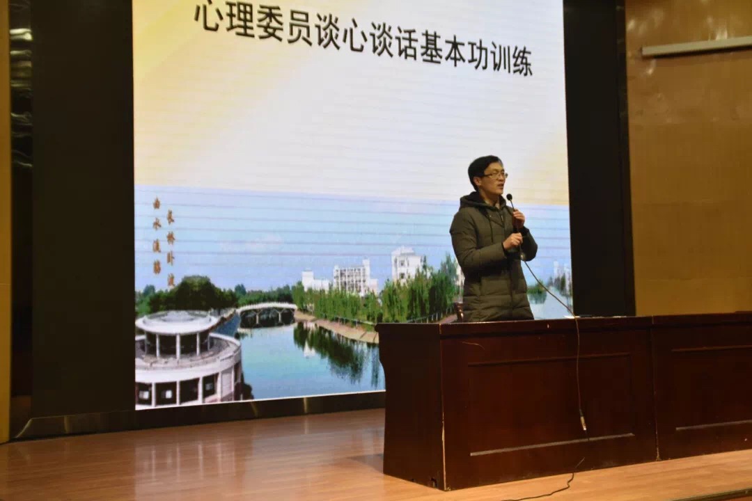 培训伊始,孟老师以一段亲切的话语,让各位心理委员放松下来,在愉快而又轻松的环境中学习。随后,孟老师直接切入了本次培训主题-心理委员谈心谈话基本功训练。孟老师从一份调查报告-有效的助人元素,让同学们了解到谈心谈话的重要性,且是心理委员的必备技能。他从“助人态度”和“谈心技术”两方面教会心理委员在帮助他人解决心理问题时,首先要尊重求助者,真诚的对待他们,支持鼓励他们,勇敢地战胜困难。其次,在谈心时要注意自己的面部表情和身体动作及语言的运用,让求助者能感受到真诚。最后孟老师送给同学们三句话1.按本色做人2.按角色做事3.按特色定位 至此,心理中心唯一的男老师授课完美结束。