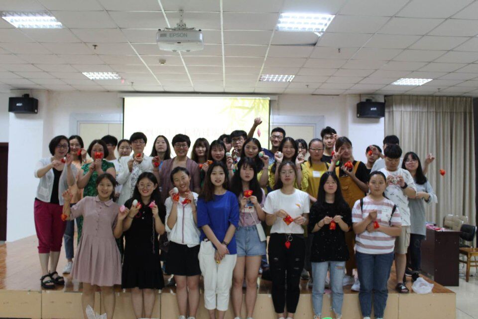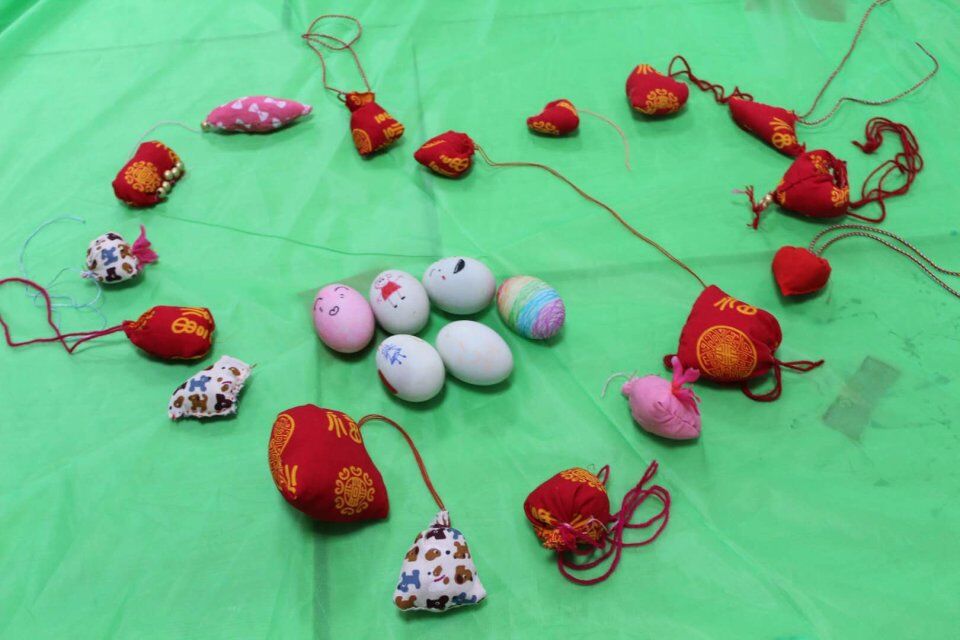 活动伊始,由我们可爱的工作人员分发了粽子、彩布、五彩绳、鸭蛋、针线等材料,之后老师们带领大家一起穿针引线,共同制作端午节香包。“包中香黍分边角,彩线剪就交绒索”,经过大家的努力,每人都拥有了属于自己的小巧玲珑、清香四溢的香包;接下来是有趣的鸭蛋彩绘环节,老师和同学们都充分发挥了自己的想象与期盼,在鸭蛋上画了最美好的祝福,并拼成可爱的心形进行了展示。香包已成,鸭蛋增彩,终于要吃到粽子啦。蜜枣在嘴中氤氲甜香,温暖也在每个人心中荡漾。控制不住激动的心情,大家以合影留下了这美好难忘的时刻。