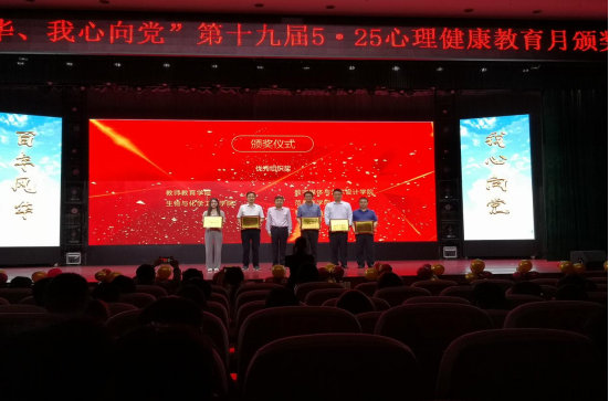 本网讯(特约记者/孟凡锐)5月25日,我校在毕业大厅举办第十九届“5·25心理健康教育月”颁奖晚会,700余名师生参加。校长安士伟、党委副书记、工会主席张伟、副校长葛晨光、党委宣传部长高芳放、党委学生工作部长路瑞峰出席并为获奖单位和个人颁奖。